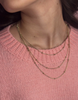 Smuk halskæde i guld med tre kæder med flotte detaljer.