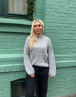Striktrøjen er normal i størrelsen. Modellen er 166 cm høj og bærer en størrelse S/M.
