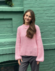 Striktrøjen er normal i størrelsen. Modellen er 166 cm høj og bærer en størrelse S/M.