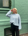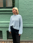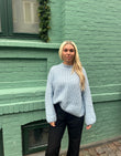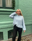 Striktrøjen er normal i størrelsen. Modellen er 166 cm høj og bærer en størrelse S/M.