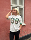 Skøn oversized t-shirt i hvid og grøn med leopard print og stjerne på ærmet.