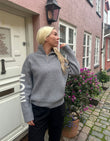 Lækker højhalset strik med Mon Cheri tekst på ærmerne.