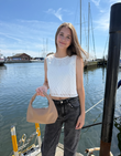 Smuk top i hvid med binde-detaljer på ryggen.